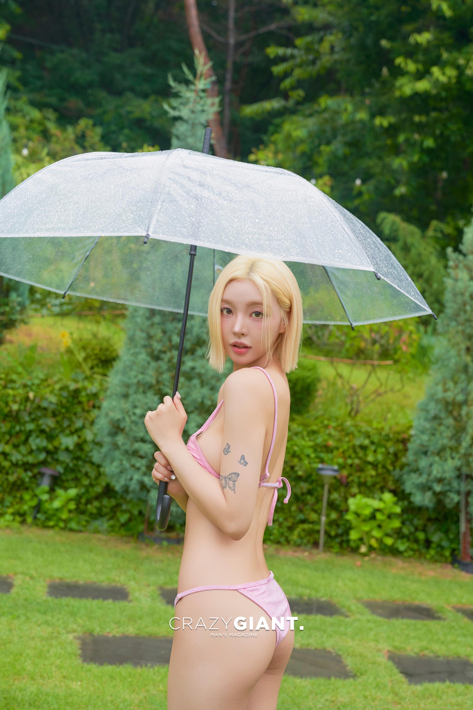 크자 01. 여름 수영장에서의 촬영, 그날은 비까지 내려서 쉽지 않은 환경이었죠. 많은 모델들이 컨디션을 무너뜨릴 수 있는 상황이었는데, 오히려 여은 씨는 그 모든 걸 자연스럽게 품은 느낌이었어요. 그날, 어떤 감정이었나요?